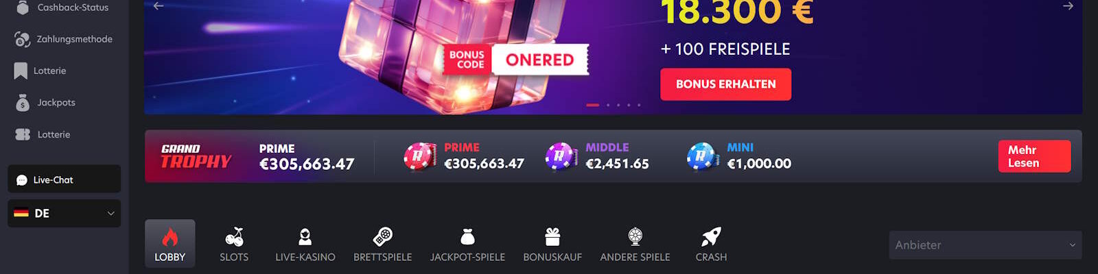 Das 1Red Casino ist seit 2022 auf dem Markt und hat es sich nach eigener Aussage zum Ziel gesetzt, das beste Online Casino aller Zeiten zu sein. Es bietet ein erstklassiges Bonussystem, einen hohen Willkommensbonus und zahlreiche weitere Promotionen, dazu eine große Auswahl von Spielen der besten Entwickler.